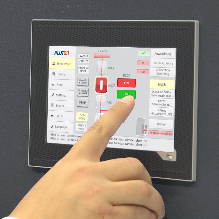 Rozdzielnica wyposażona jest w mikroprocesorowy system sterowania i diagnostyki oparty na sterownikach przemysłowych SOTA® (Pluton), który zawiera panel wyświetlania z kolorowym ekranem LCD.