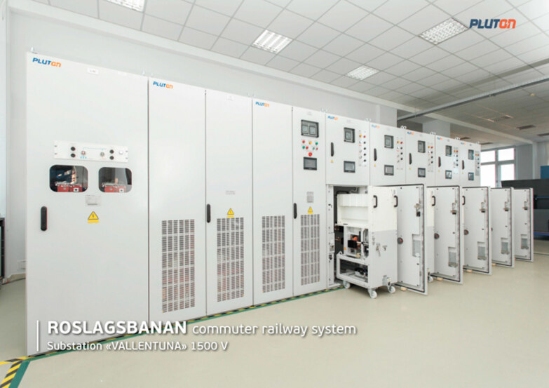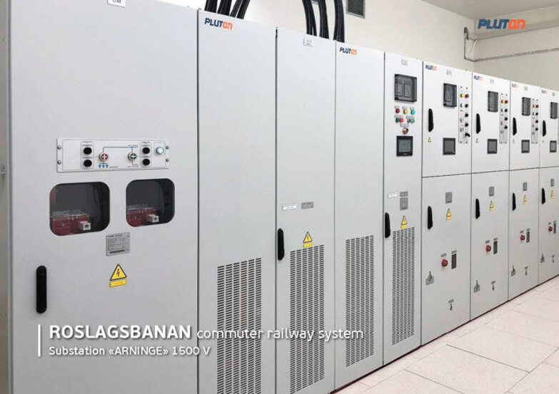 In 2022 PLUTON provided powerful 12-pulse voltage-controlled rectifiers VCR with a rated current of 2.3 kA and voltage of 1500 V and improved control algorithms for Vallentuna and Lindholmen, the new traction substations on the Roslagsbanan train line. Within the frame of the project, PLUTON implemented for the first time the IEC 61850 Power Industry Communications Standard in the substation's specific environment. It provides integration of all equipment and systems into a unified communication network for prompt and safe control, as well as for the integration into the control system of other levels.